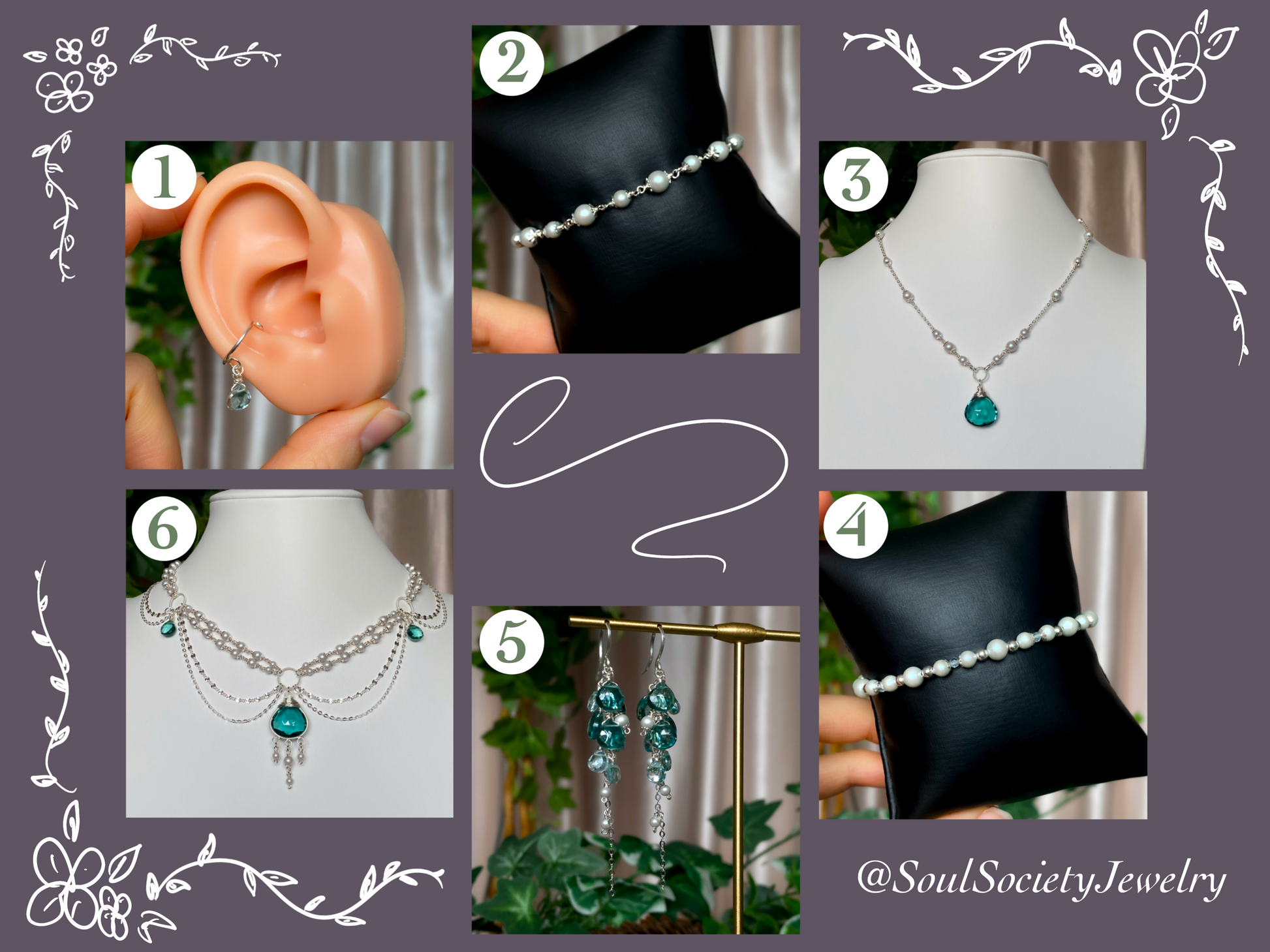 ༺ Certain styles can be omitted in favor of others if desired (examples - client doesn't wear bracelets and would like more earrings instead, client has cartilage piercings and would like regular earrings to be swapped for cartilage piercing jewelry, etc.)