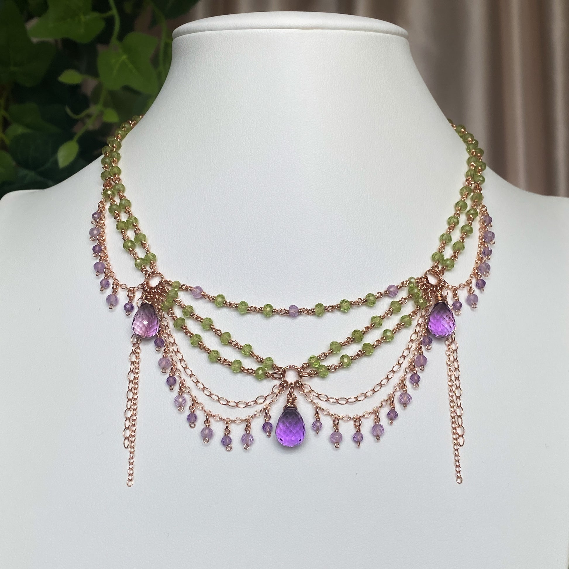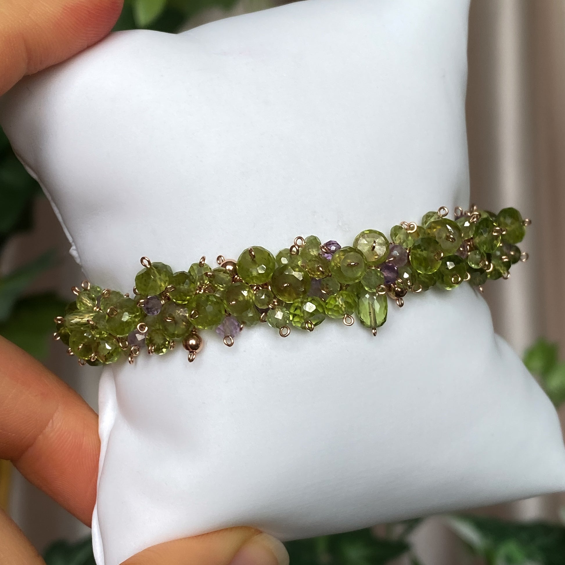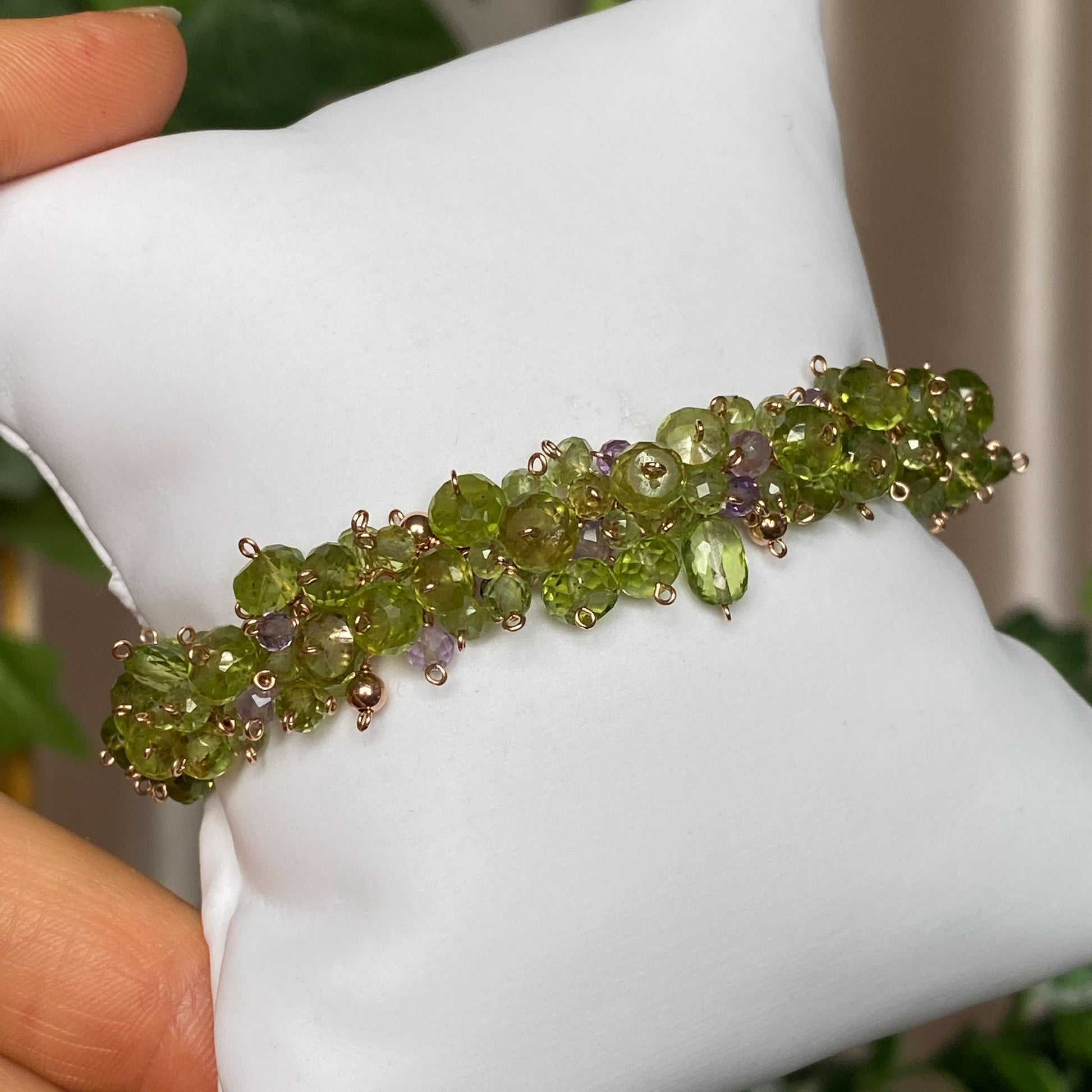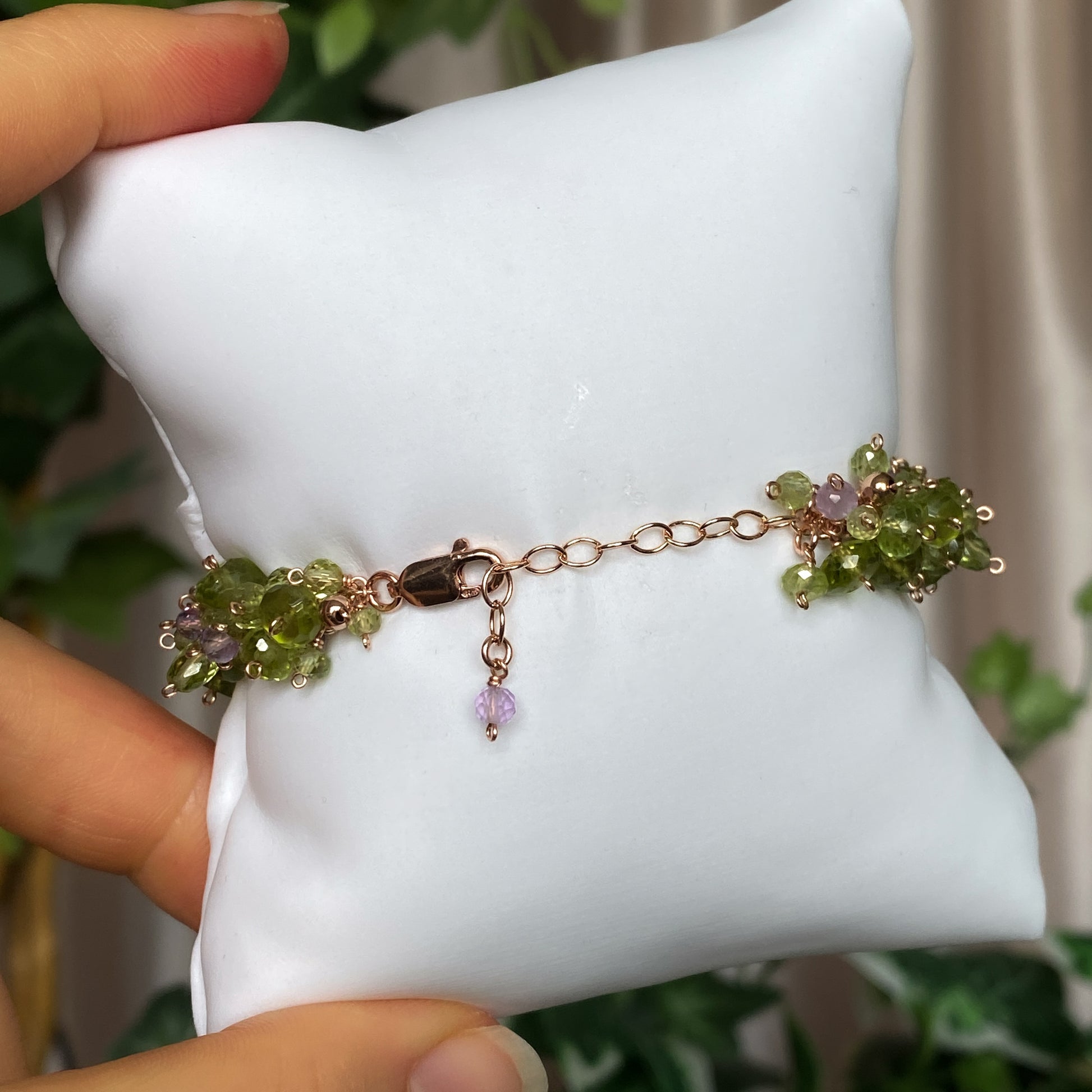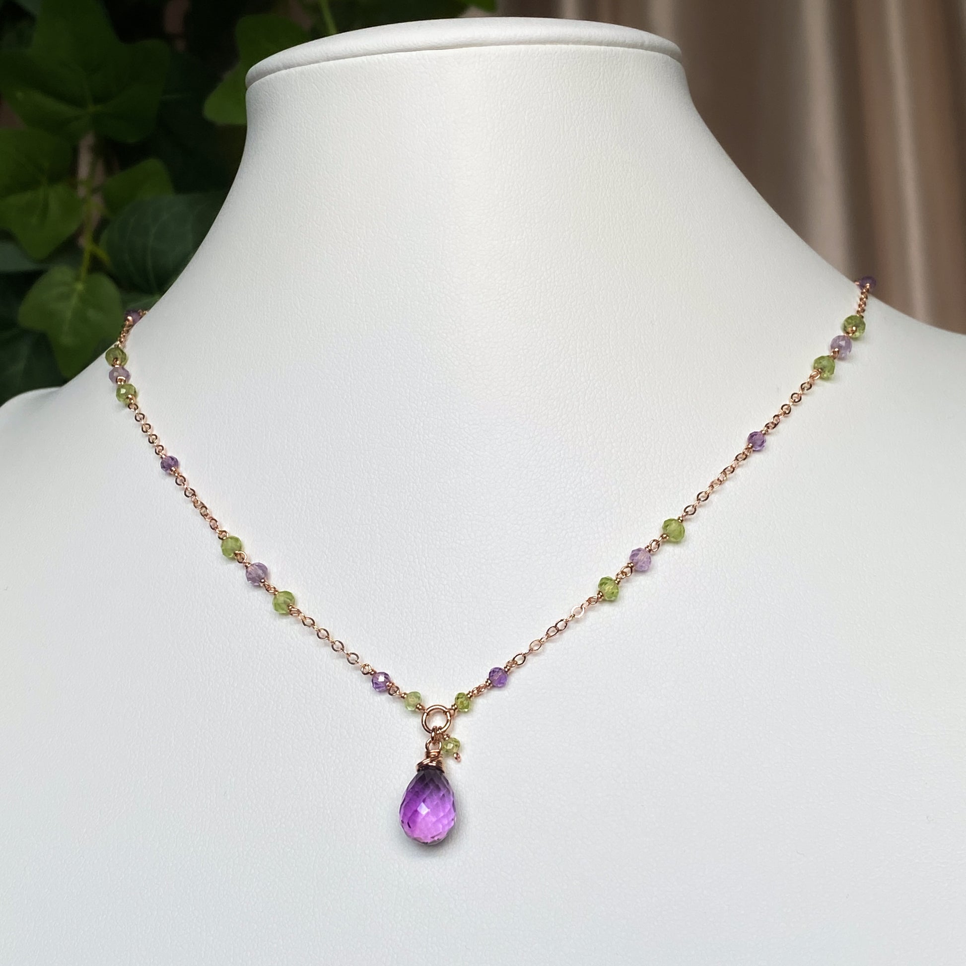༺ Materials: AAA pink amethyst, AAA peridot, 14k rose gold filled.