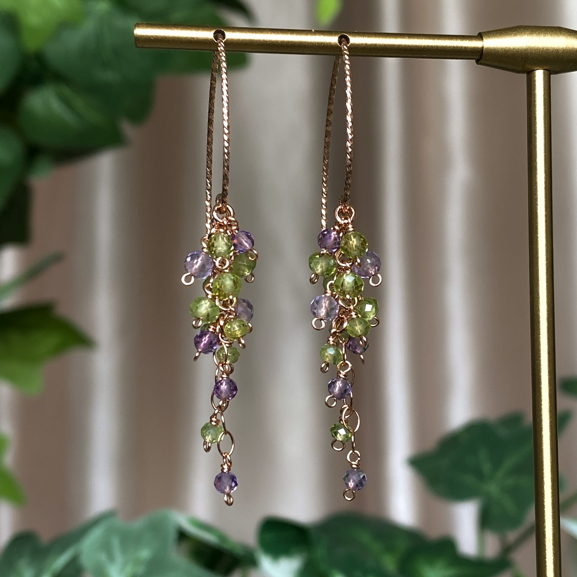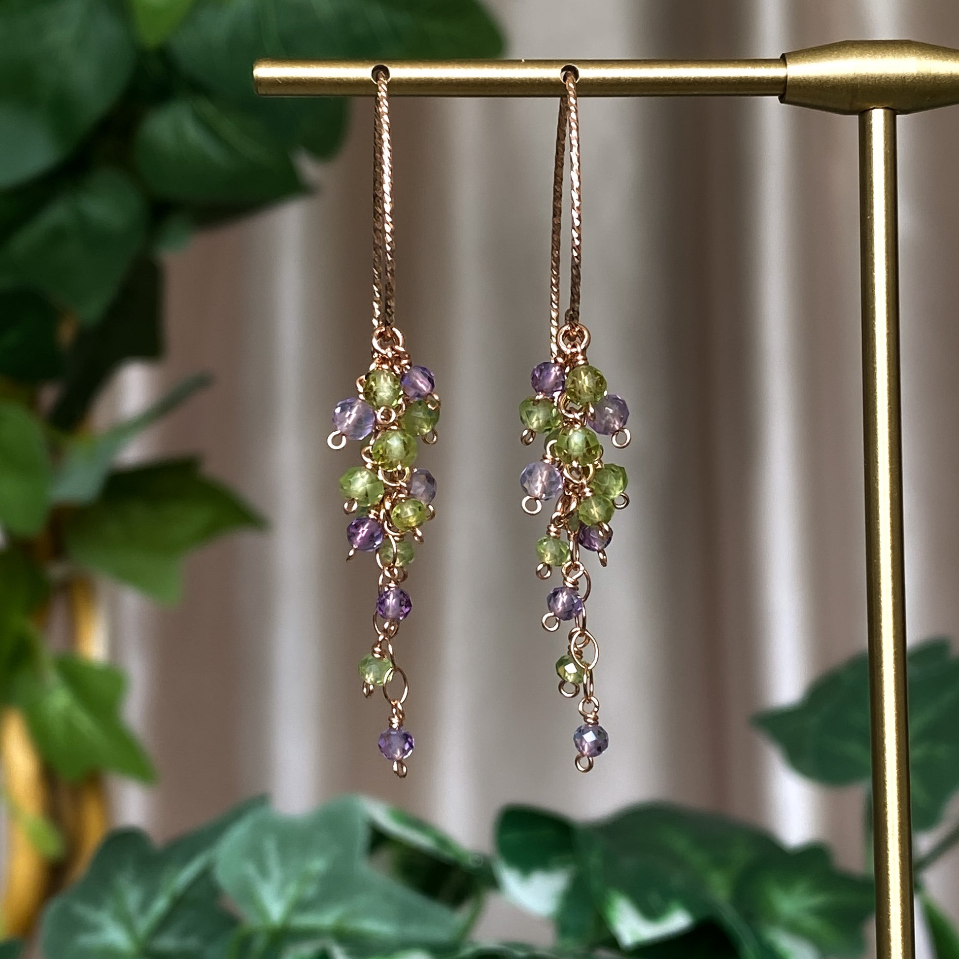 ༺ Materials: AAA pink amethyst, AAA peridot, 14k rose gold filled.