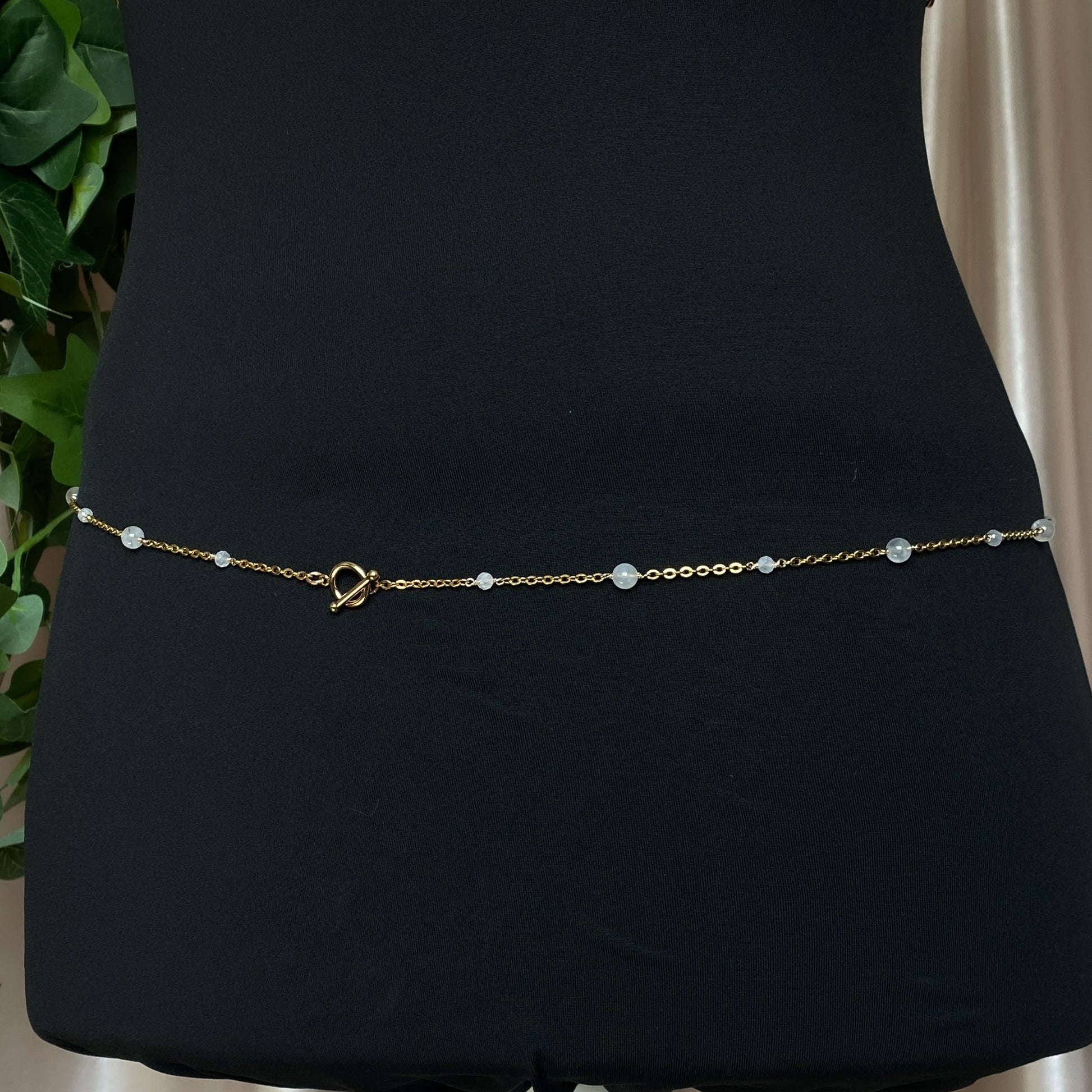 ༺ This listing is for the “Celestine” waist chain in gold stainless steel and 14k gold filled with a toggle clasp closure.