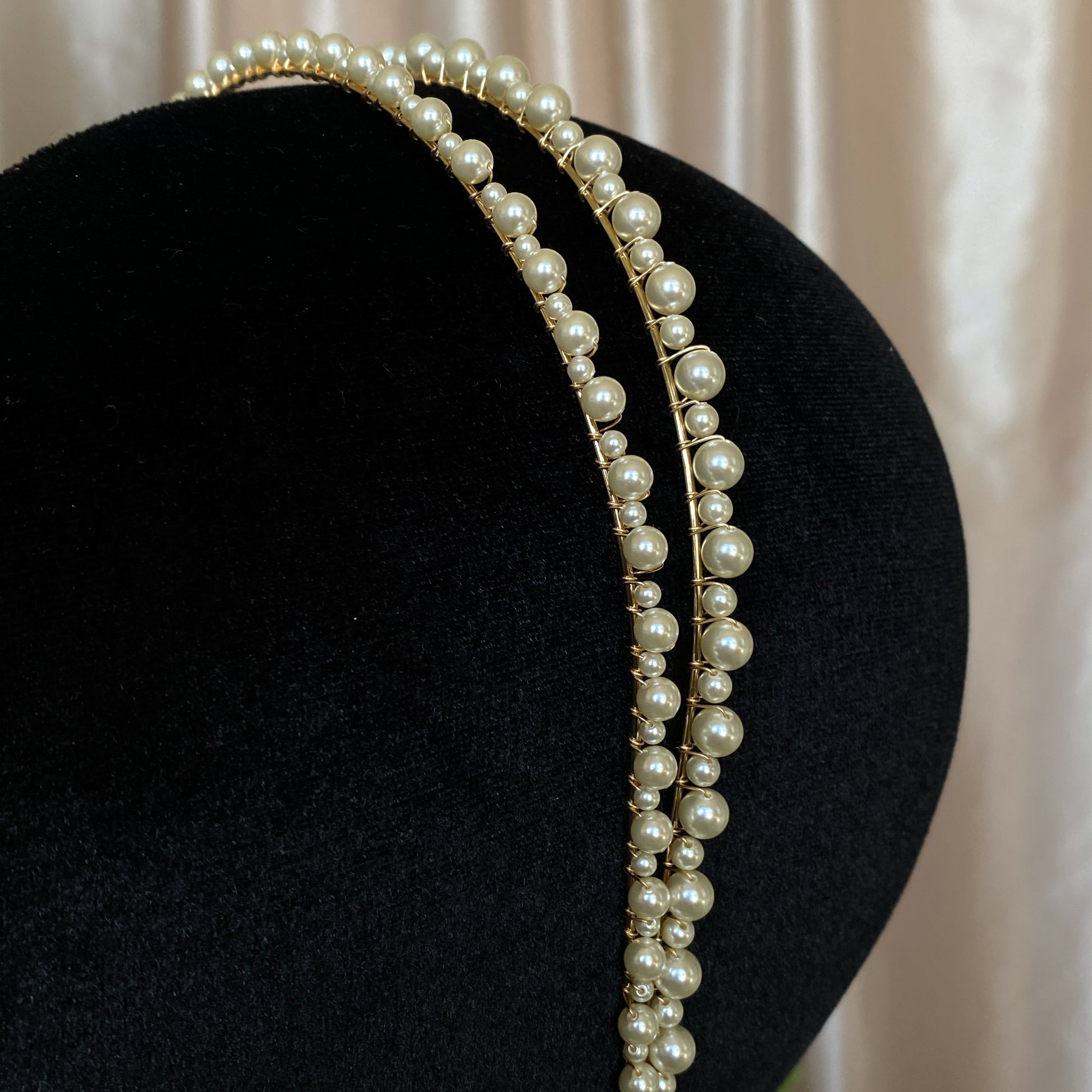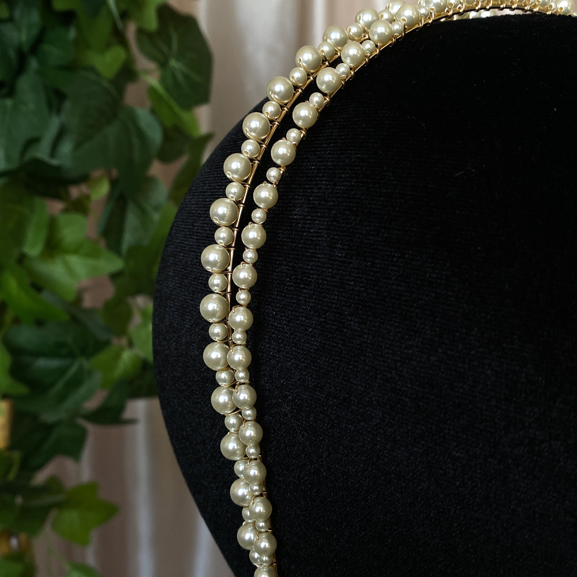 ༺ This listing is for the “Evangeline” 2 layer crystal pearl headband in 14k gold filled.