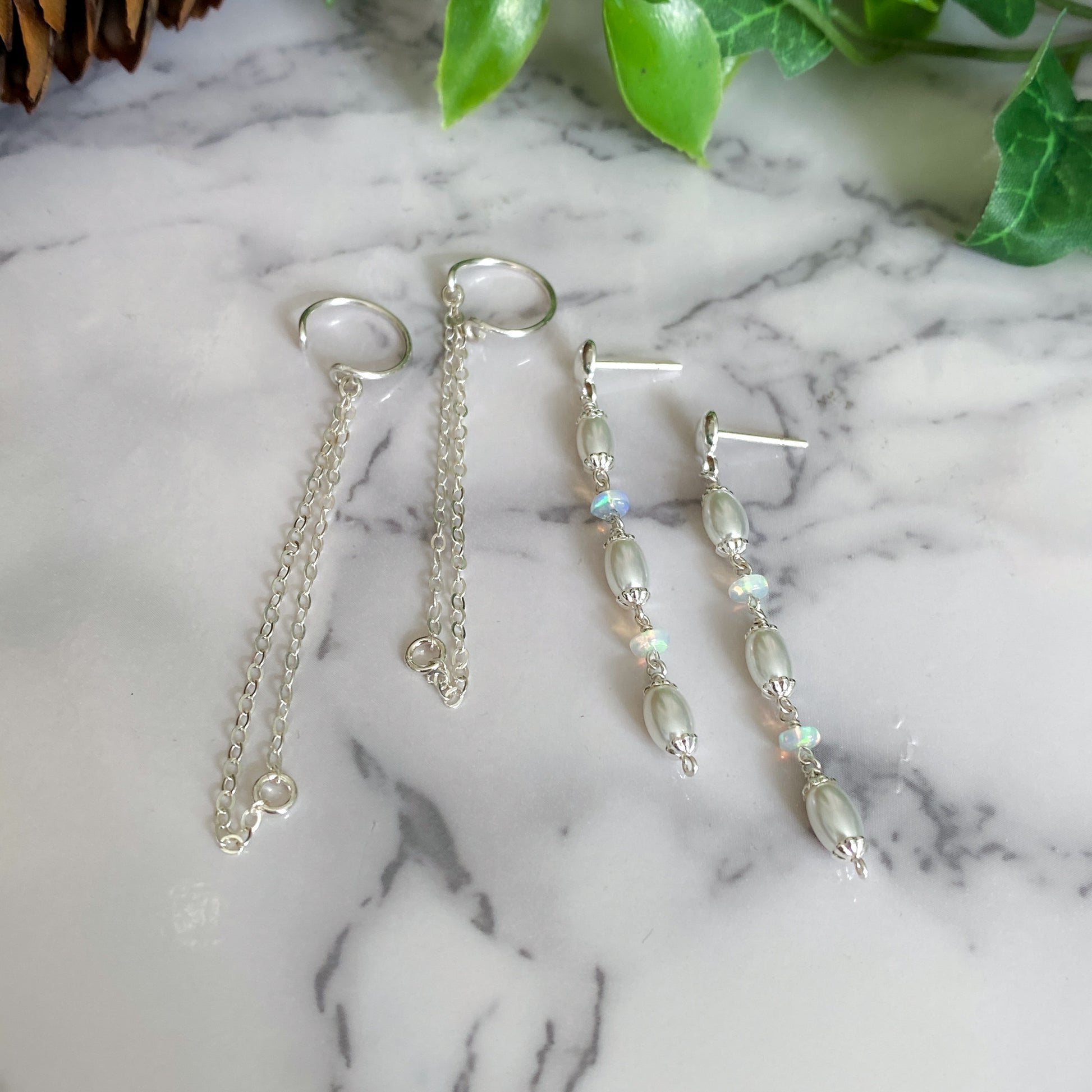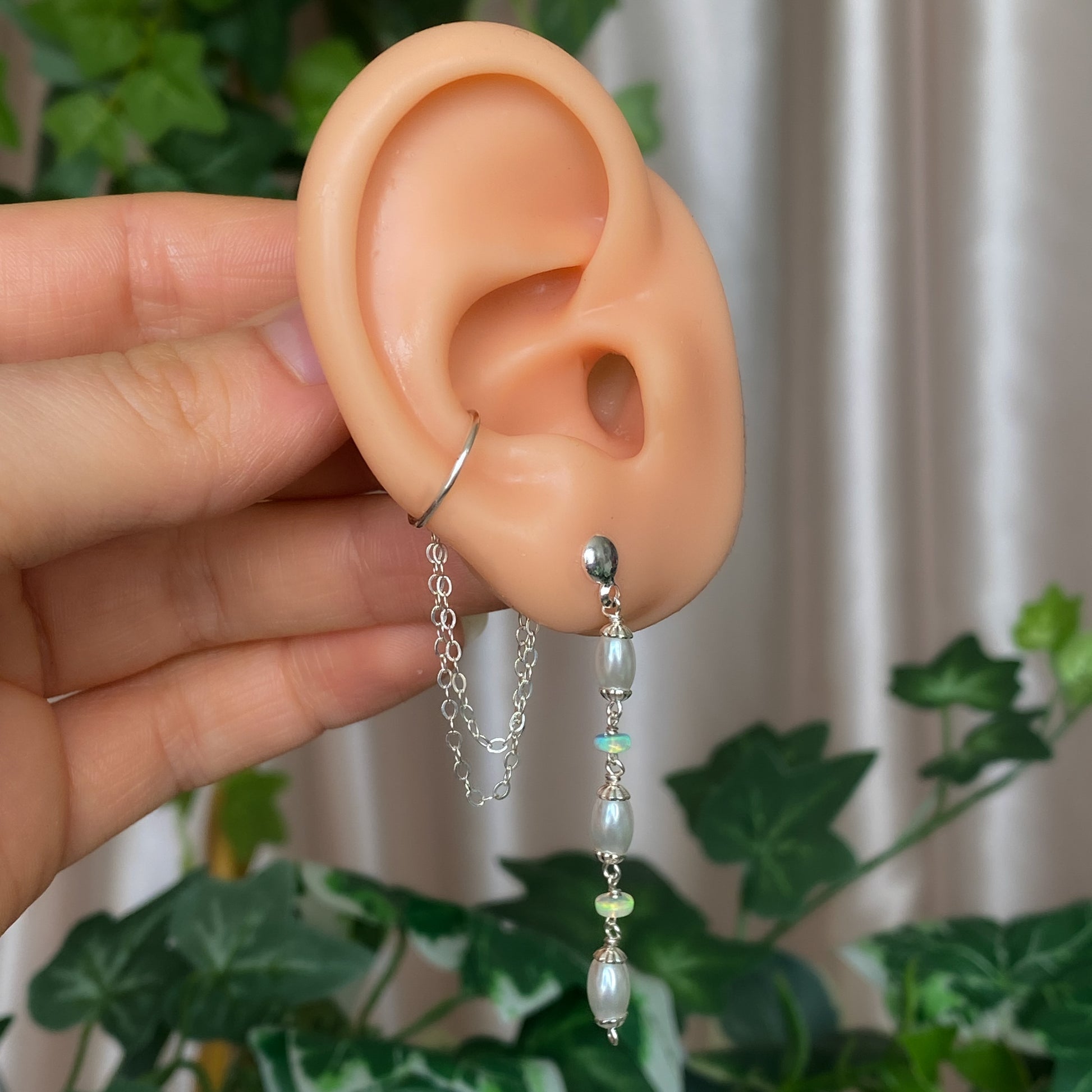 ༺ This listing is for the Florence dangle earrings on posts with connecting faux conch cuffs in sterling silver.