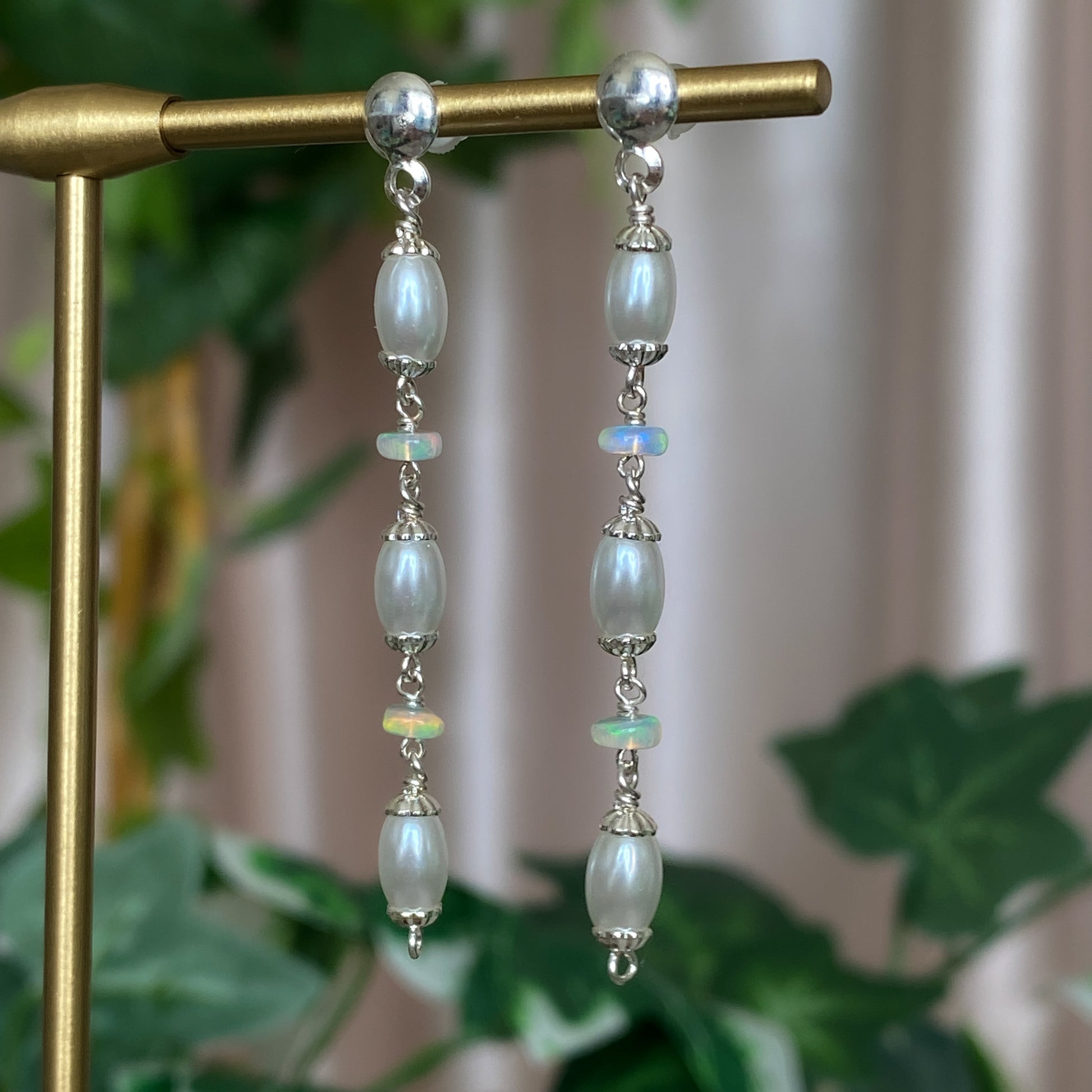 Florence ~ Crystal Pearl, Ethiopian Opal, and Sterling Silver Earrings