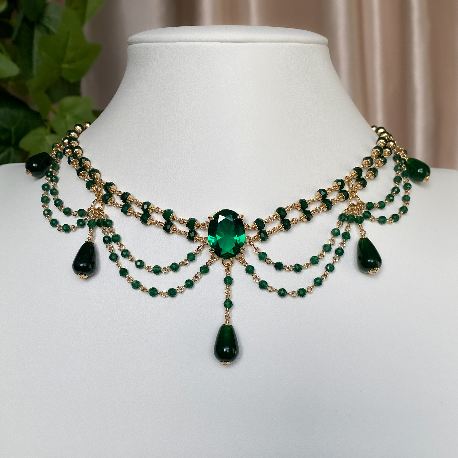 ༺ Materials: emerald jade beads (dyed), 14k gold filled.