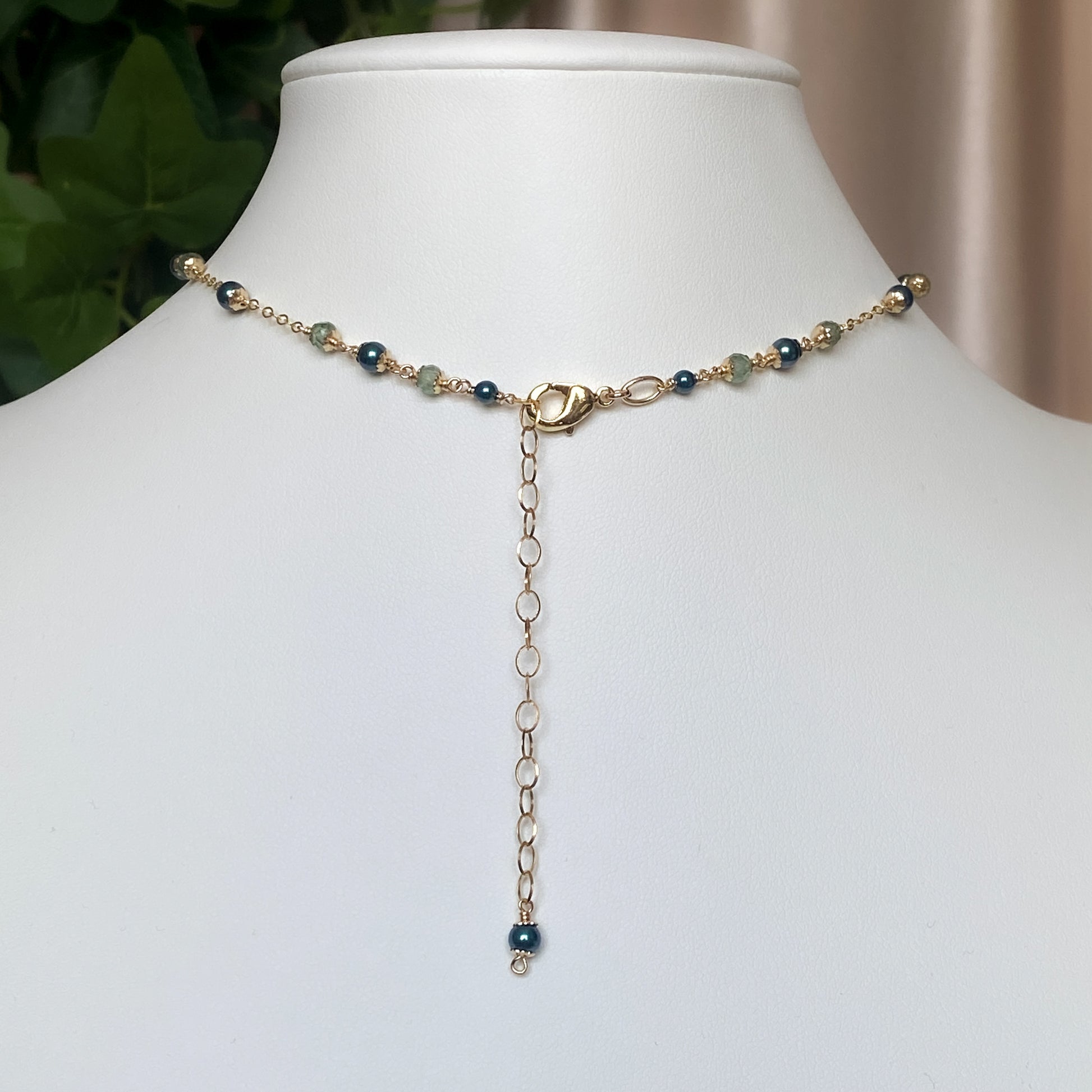 ༺ Materials: crystal pearls, AAA green apatite, 14k gold filled