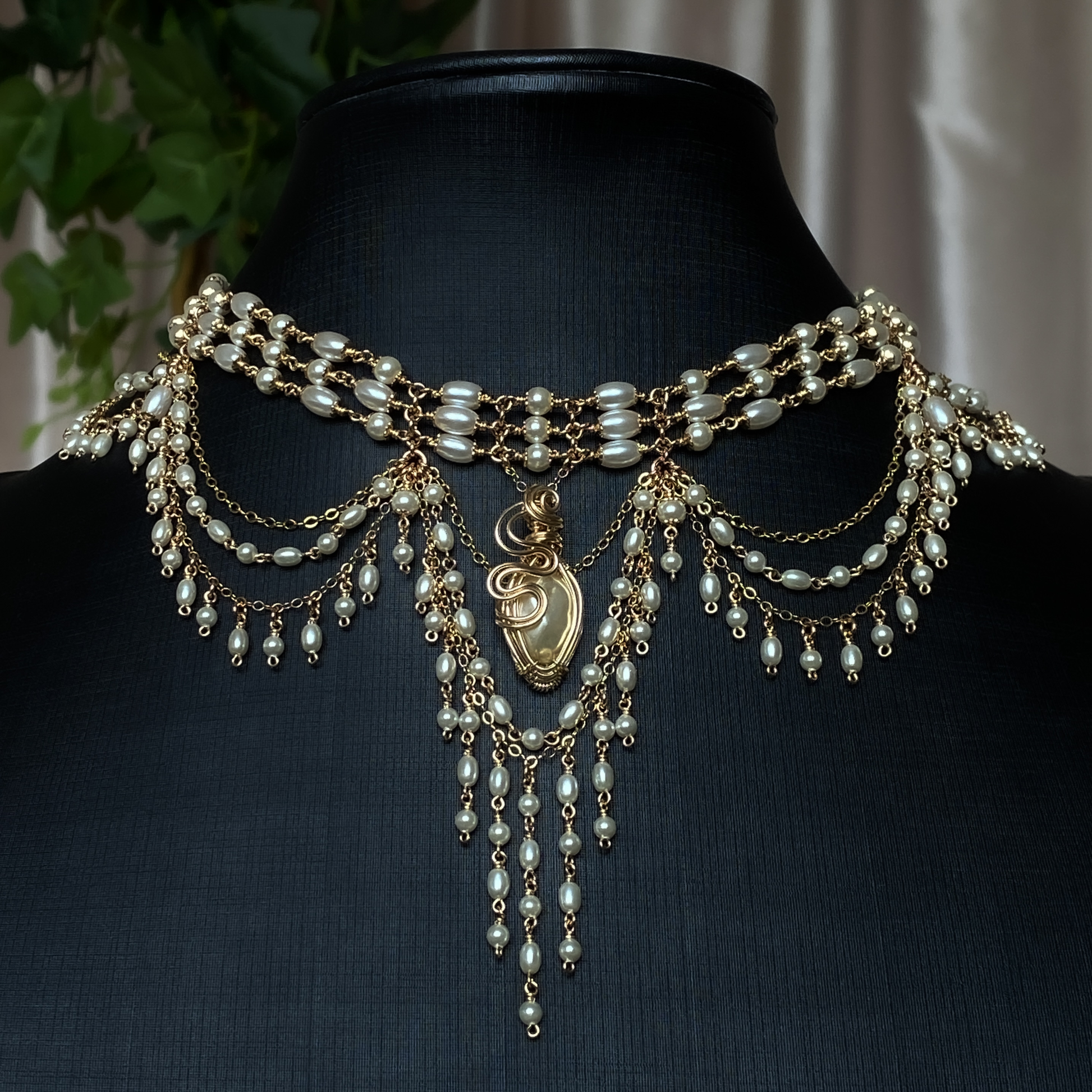 ༺ Materials: crystal pearls, glass pearls, 14k gold filled.
