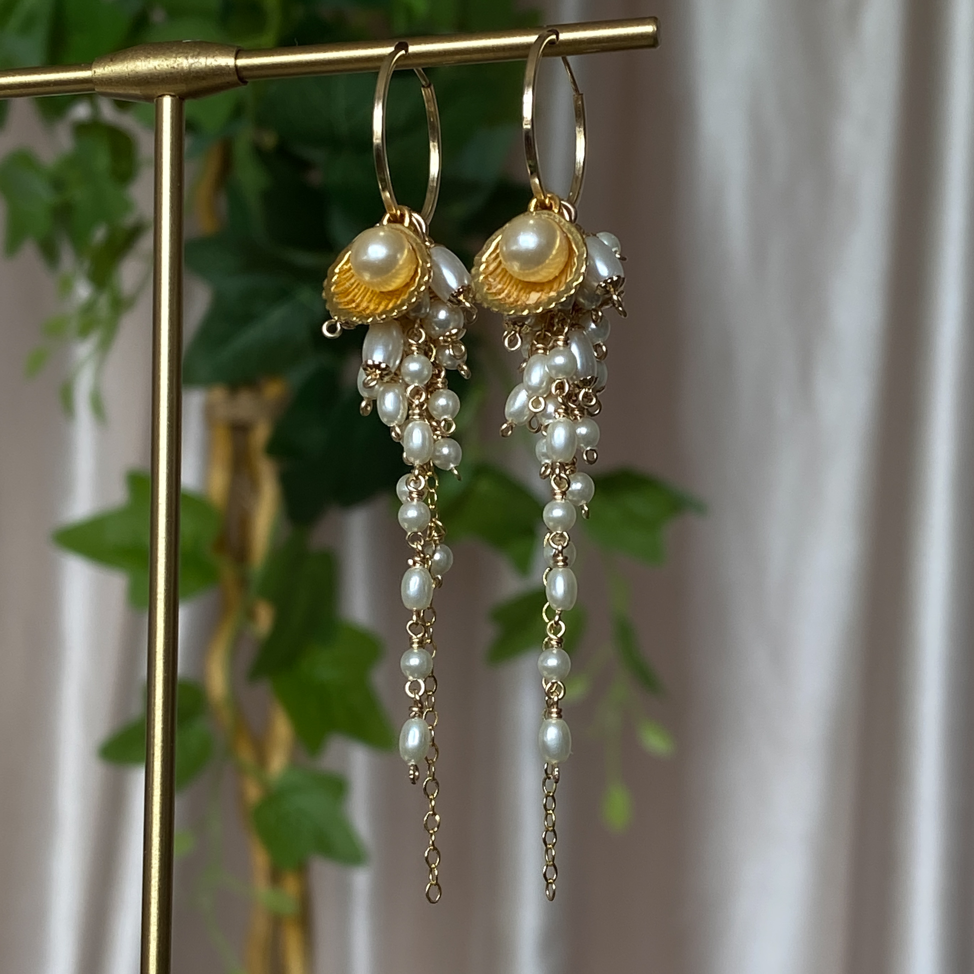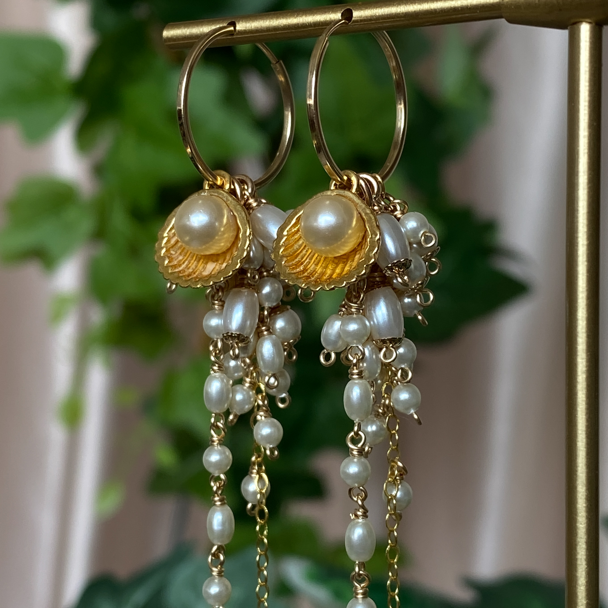 ༺ This listing is for the “Ocean Angel” mermaid inspired cluster earrings on continuous hoops in 14k gold filled.