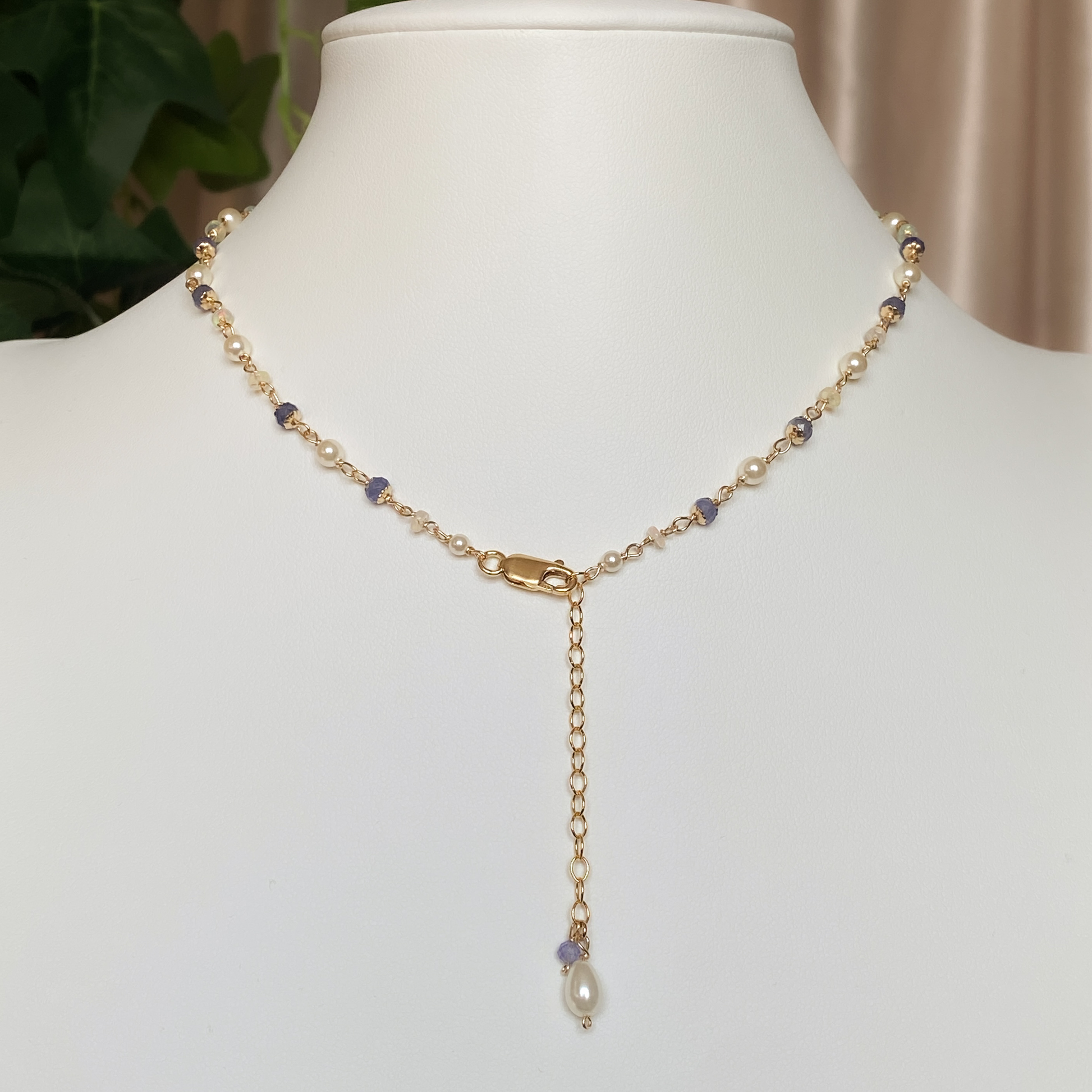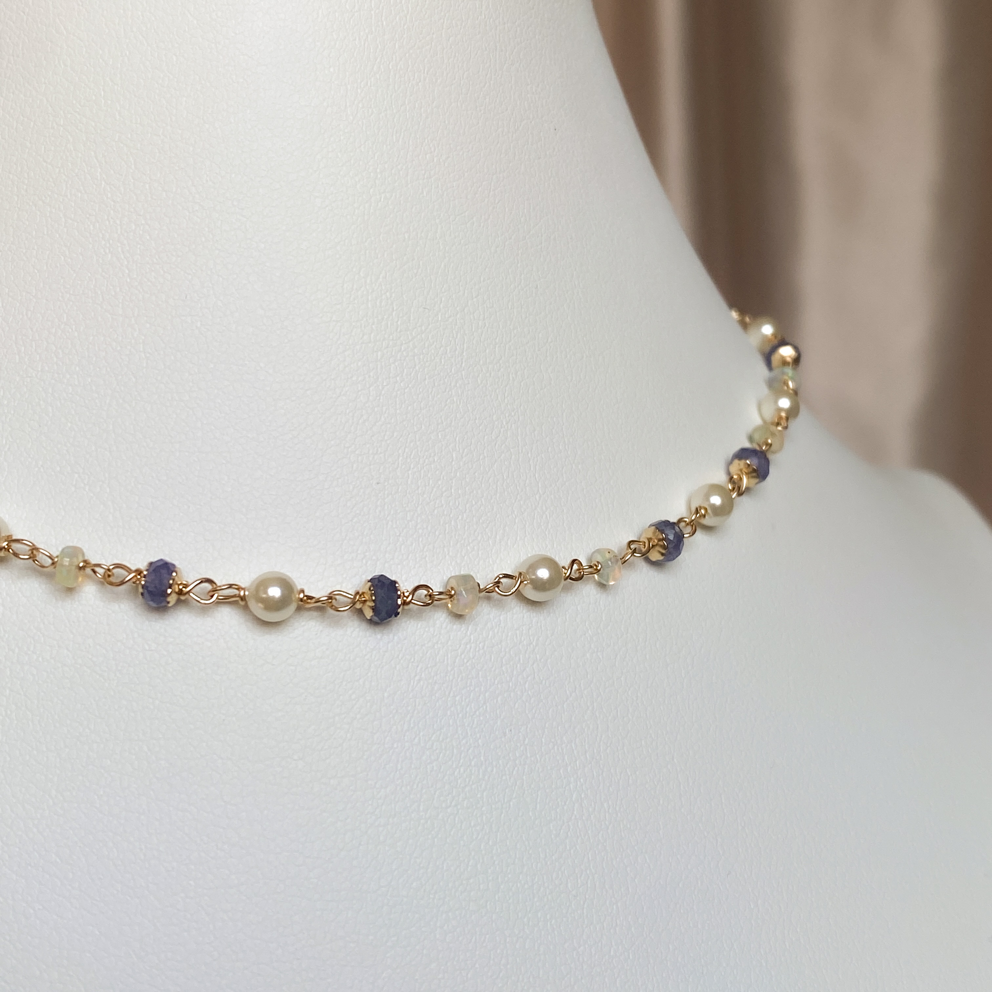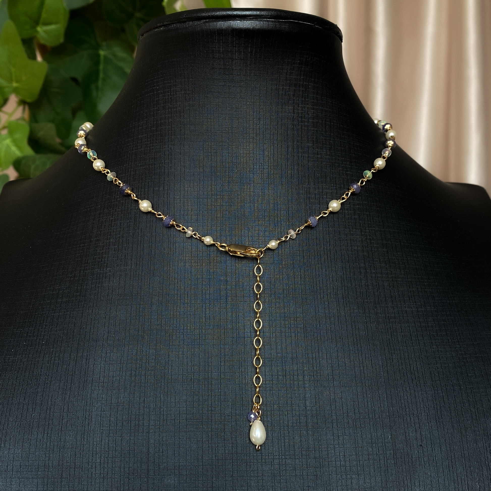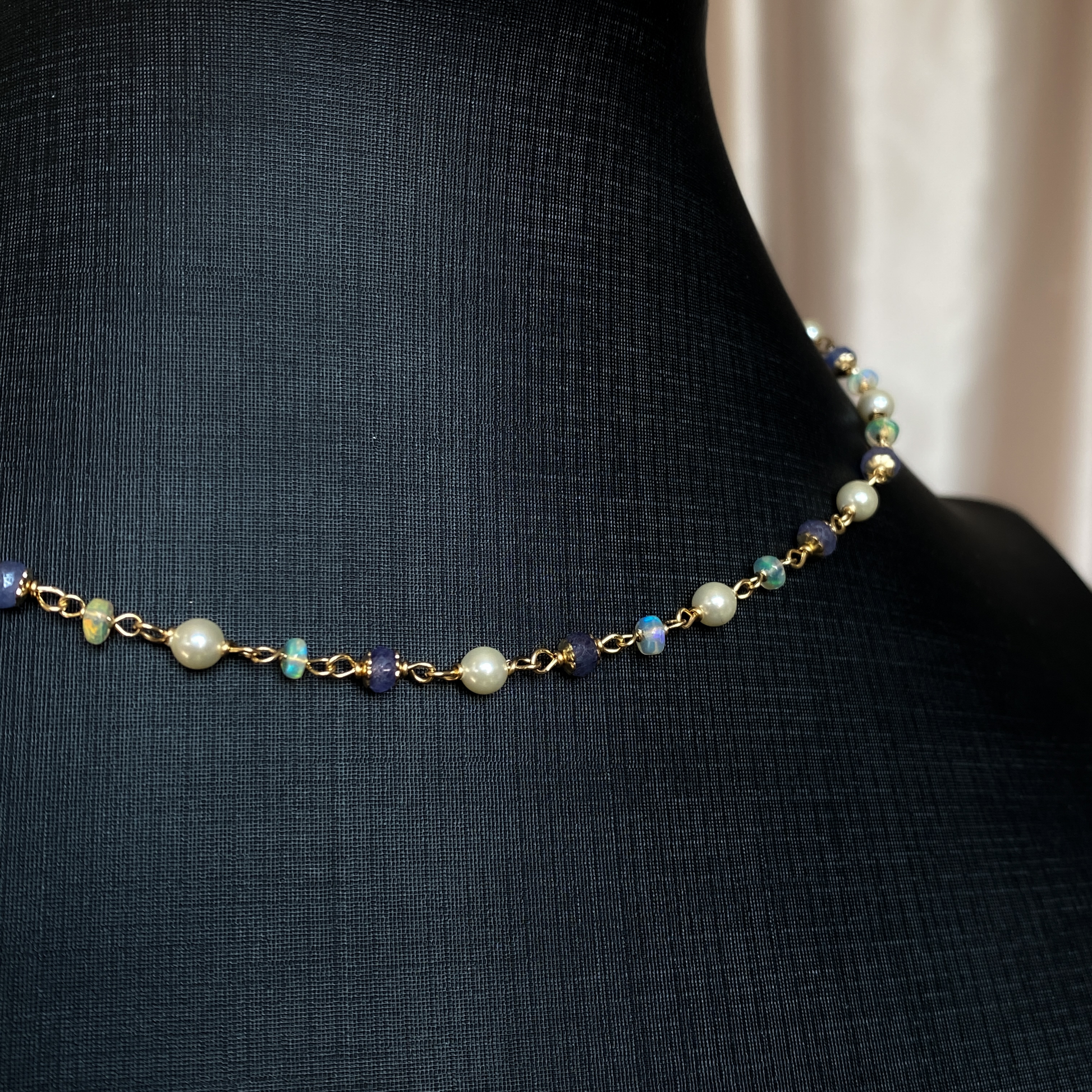 ༺ Materials: crystal pearl, tanzanite, Ethiopian opal, 14k gold filled.