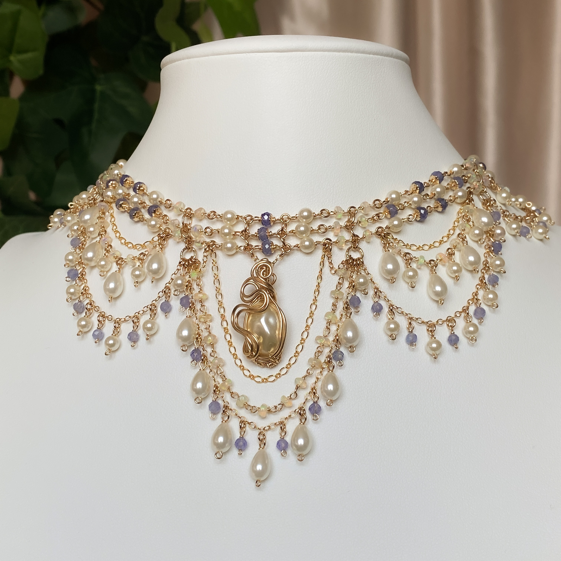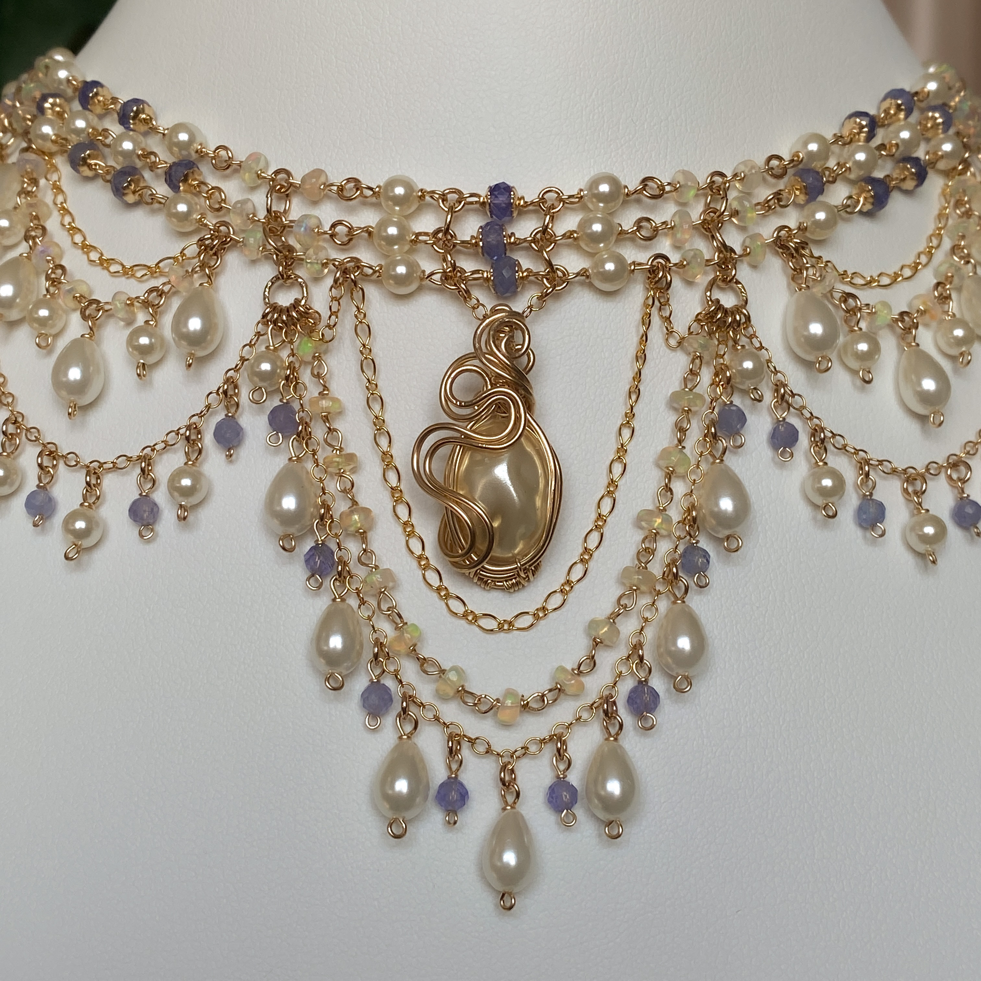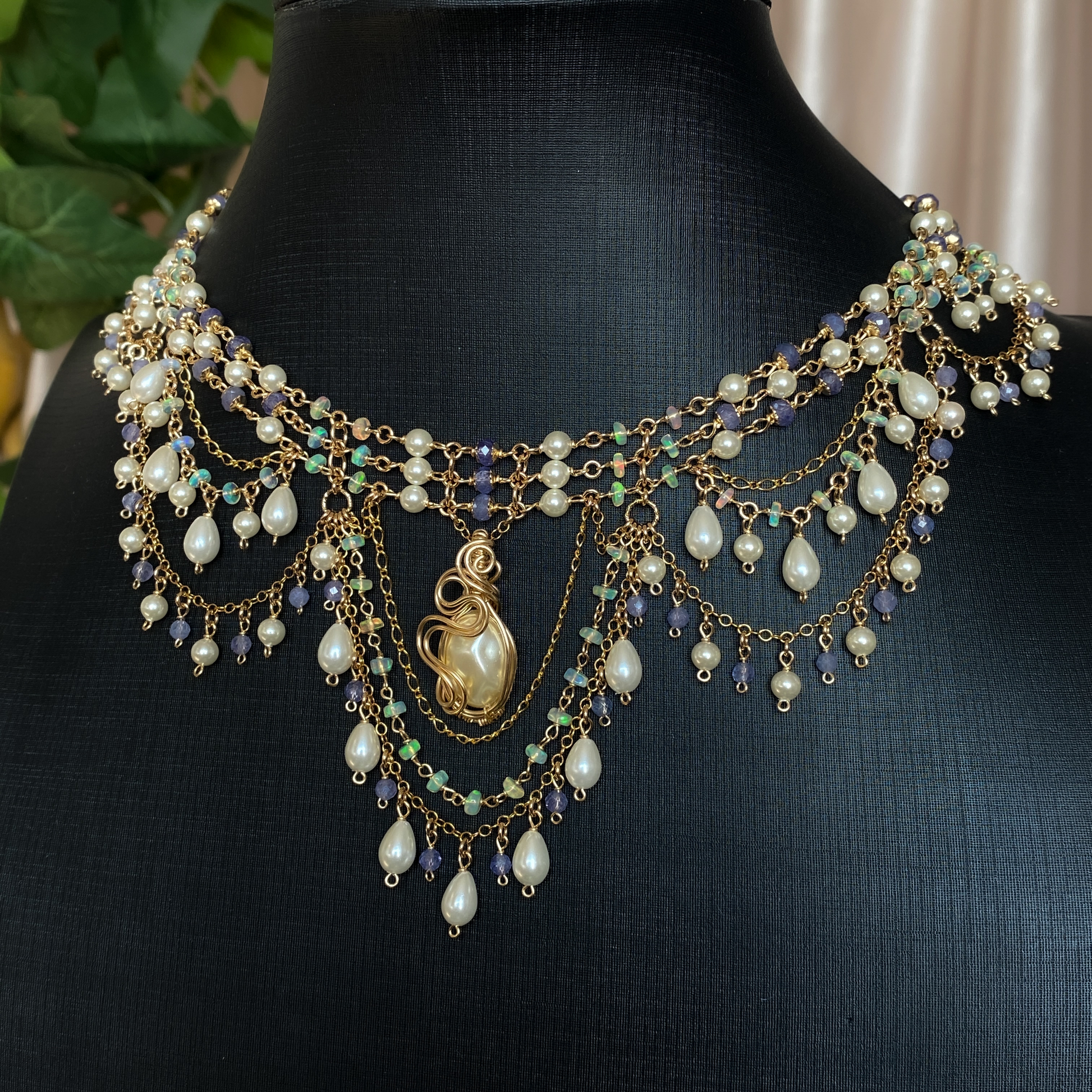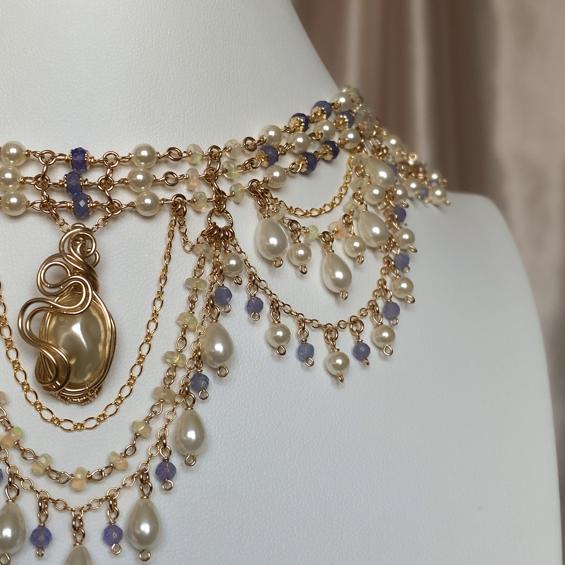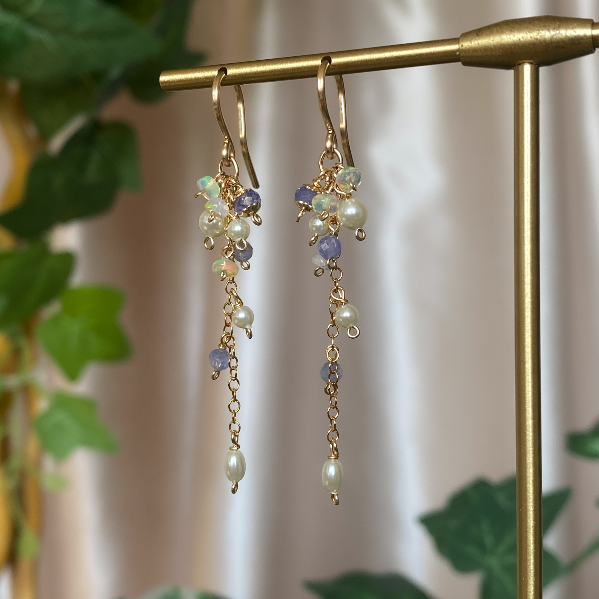 ༺ Materials: crystal pearl, tanzanite, Ethiopian opal, 14k gold filled.