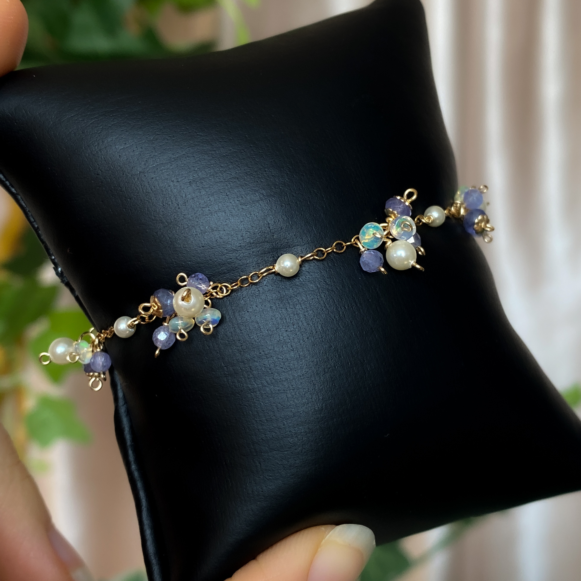 ༺ Materials: crystal pearl, tanzanite, Ethiopian opal, 14k gold filled.
