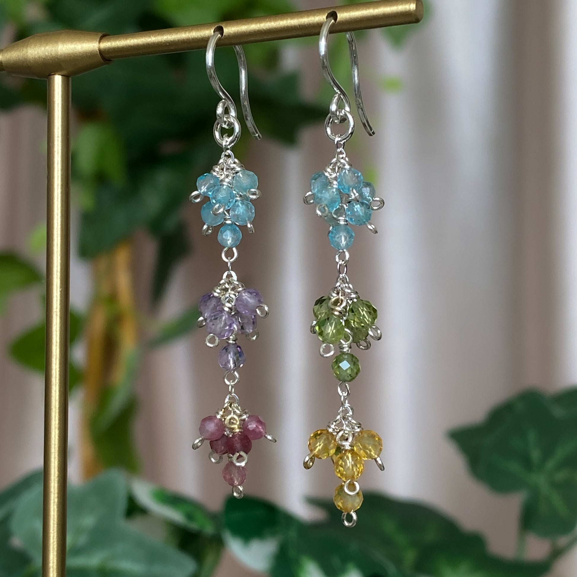 Vera ~ Blue Topaz, Pink Tourmaline, Pink Amethyst, Peridot, Citrine, and Sterling Silver Earrings